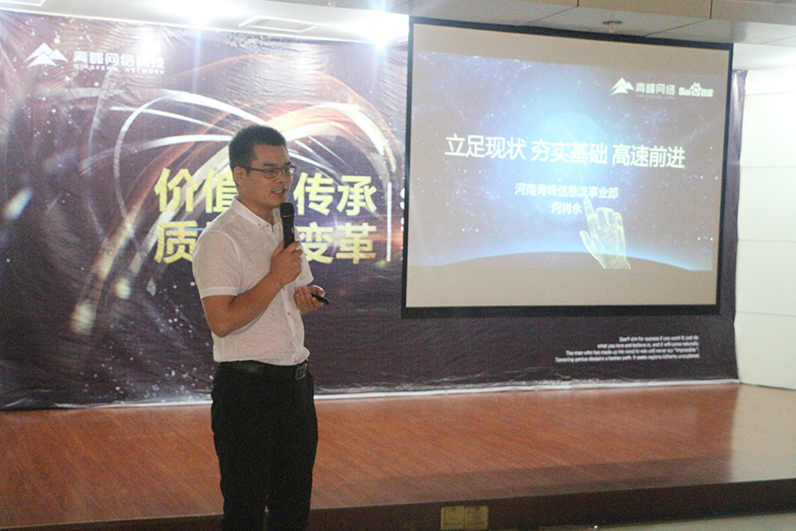 價值 · 傳承 · 質(zhì)量 · 變革 2017年7月7日,河南青峰網(wǎng)絡(luò)科技有限公司年中總結(jié)會于小店溫泉會議中心召開。河南青峰董事長黃偉先生、總經(jīng)理岳振寧先生及青峰河南地區(qū)管理層全體成員悉數(shù)到場,匯報上半年工作并對下半年進行整體規(guī)劃。 此次會議共計一天半時間,針對各個部門、各個地區(qū)的實際情況,管理層進行分析匯報,并制定相關(guān)策略,選取試點地區(qū)試運行;另外會議還安排了小組討論環(huán)節(jié),自行制定議題討論并匯報。 2017是河南青峰主抓質(zhì)量、尋求變革的一年,為此公司上下提出許多方案,經(jīng)過重重篩選和試運行獲得了不少經(jīng)驗,年中總結(jié)為四地各部門之間提供了一個橋梁,讓大家能在未來協(xié)同作戰(zhàn)中保持、的配合。 歡迎青峰各地家人來到新鄉(xiāng) 特別感謝婭咪婭烘焙為此次會議提供冷餐服務(wù) 本次會議由運營策略中心帥凡女士擔(dān)任主持人 河南青峰總經(jīng)理岳振寧先生做整體規(guī)劃 岳總從公司各大業(yè)務(wù)口出發(fā),提出“青峰云+生態(tài)”、“百度客戶池”等新思路,要求各部門提升格局,以目標(biāo)為中心展開工作,建立健康、穩(wěn)定、可持續(xù)發(fā)展的公司框架,提升各業(yè)務(wù)口工作成效。 百度客服部總監(jiān)劉娜娜女士做工作匯報 劉總上半年經(jīng)歷了公司兩大業(yè)績部門的職責(zé)輪崗,報告內(nèi)容從營銷部業(yè)績及百度客服Q3業(yè)務(wù)打發(fā)入手進行匯報,并對上半年成立的聯(lián)合SEM團隊、飛龍團隊進行介紹和總結(jié)匯報。 云事業(yè)部總經(jīng)理趙培女士做工作匯報 趙總從上半年數(shù)據(jù)入手,提出提高人均效能為今后工作,降低人員流失率、保證新員工效能是當(dāng)務(wù)之急,另外趙總還對客服能力培訓(xùn)、我司網(wǎng)站價格及質(zhì)量做出要求,后對Q3云事業(yè)部任務(wù)進行拆分安排。 運營策略中心總監(jiān)司軍慧女士做工作匯報 司總圍繞公司“三個質(zhì)量”原則展開匯報,提出質(zhì)檢考核制度變革,對上半年質(zhì)檢合格率進行分析,并提出不合格問題所在;另外還對上半年度客戶滿意度調(diào)研做了匯報,對各地區(qū)投訴情況進行分析總結(jié),對公司內(nèi)部協(xié)同做出精細(xì)化安排;后,司總對新成立的協(xié)同作戰(zhàn)部門——SEM團隊做規(guī)劃,匯報了團隊研究成果進展及后期發(fā)展安排。 百度信息流事業(yè)部總經(jīng)理何肖永先生做工作匯報 何總用“立足現(xiàn)狀 夯實基礎(chǔ) 高速前進”三個詞高度概括了目前信息流團隊的工作及今后的發(fā)展方向,通過上半年業(yè)績分析、人均效能分析、行業(yè)結(jié)構(gòu)數(shù)據(jù)分析,得出Q3實施策略,后,何總以一句話結(jié)尾,“遇到問題的時候,放棄遐想,先干到無能為力再說”,希望與大家共勉。 百度糯米事業(yè)部總經(jīng)理姬燕娜女士做工作匯報 姬總首先對糯米事業(yè)部上半年業(yè)績進行羅列分析,針對不足點制定下半年業(yè)務(wù)邏輯,深挖客戶需求、賦能產(chǎn)品、確定盈收方向,細(xì)化任務(wù)提升點,并對培訓(xùn)體系提出高標(biāo)準(zhǔn)、高要求。 下午1點30分,為時150分鐘的分組討論正式拉開帷幕,各小組進行熱烈討論 各小組代表進入發(fā)言環(huán)節(jié),總結(jié)各組針對議題的討論結(jié)果并匯報 8號早上8點整,第二日的總結(jié)會如期進行,首先由岳總為上半年管理者頒獎 獎品是由岳總精心挑選的死磕俠之不服來戰(zhàn)套裝。四個威武雄壯的死磕俠,四個兵種,代表四種能力;四樣武器,都是沖著自己來的,是對自己的要求;一個人要像一支隊伍,對著自己的頭腦和心靈招兵買馬,不氣餒,有召喚,愛自由。 焦作營銷部經(jīng)理劉允飛先生做經(jīng)驗分享 劉經(jīng)理列舉團隊上半年突出的改變點,以被動提升轉(zhuǎn)變?yōu)橹鲃犹嵘秊榍腥朦c,分析過程管理方法,終以尋求增量為落腳點進行分享,用“將有必死之心,士無貪生之念!”這句話致青峰的2017。 洛陽營銷部經(jīng)理蔡伊娜女士做經(jīng)驗分享 很好很受用的五句話,同樣分享給大家: 1、常態(tài)化數(shù)據(jù)既要有量,又要有質(zhì),工作沒質(zhì)量,生活沒保障; 2、再長的路,一步步也能走完,再短的路,不邁開雙腳也無法到達,不要讓太多的昨天占據(jù)你的今天; 3、想做好本職工作,先理解工作本質(zhì),不是所有的人都能理解自己的工作; 4、任何事情你想做都有方法,不想做就有借口,你有選擇的自由,也有承擔(dān)后果的義務(wù); 5、如果這個世界上真的有奇跡,那一定是努力的另一個名字; 云事業(yè)部網(wǎng)站客服部經(jīng)理寧晶晶女士做經(jīng)驗分享 寧經(jīng)理跟大家分享了自己目標(biāo)管理的相關(guān)經(jīng)驗,這是一場關(guān)于信念的堅持,無論擺在自己面前的任務(wù)有多艱巨,都要有自信,同時要學(xué)會給予團隊信心,上下同欲,以終為始。 洛陽青峰總經(jīng)理崔婷女士做經(jīng)驗分享 崔總從團隊組建談起,認(rèn)為創(chuàng)新與成效并行可大化員工價值,幫員工制訂未來可執(zhí)行的目標(biāo)與計劃,目標(biāo)管理很重要;同時,對團隊和個人工作進行分析,發(fā)現(xiàn)問題,討論解決方法,聽取大家對團隊的意見,及時工作方法,持續(xù)關(guān)注員工與團隊能讓部門良性發